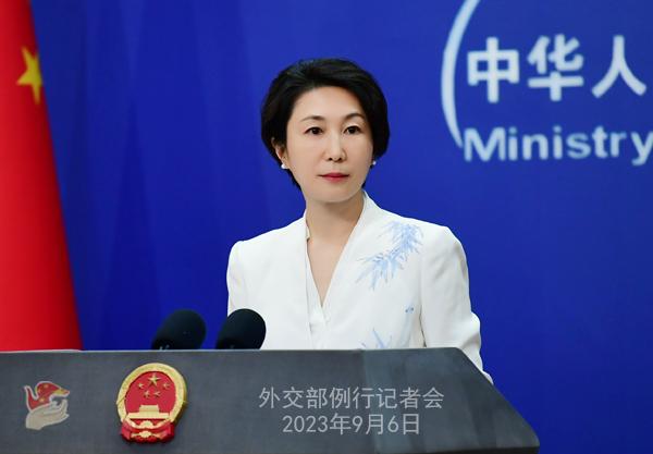 中新网北京9月6日电 (谢雁冰 秦亦姝)中国外交部发言人毛宁6日主持例行记者会。