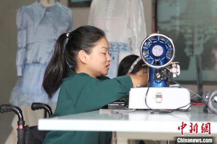 在成都纺织高等专科学校的“丽裳羽衣”服装团队工作室内,张晓丽一身绿色衬衣清爽利落,轮椅脚踏板上,黑色皮鞋干净锃亮。因为重度脊柱侧弯,她11岁时下肢瘫痪。“从那时起,穿上漂亮裙子,成了我最大的梦想。”张晓丽发现买到的裙子总是不贴合身体,身边的残障朋友也都买不到合身服装,便萌生了设计无障碍服装设计的想法。