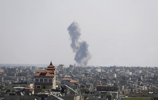 ↑这是10月7日在加沙地带南部城市拉法拍摄的以色列军队空袭造成的浓烟。新华社发(哈立德·奥马尔摄)