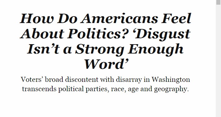 美国民众批评政府功能失调:政治领导人疏远我们,两党根本无法为国家谋福利!