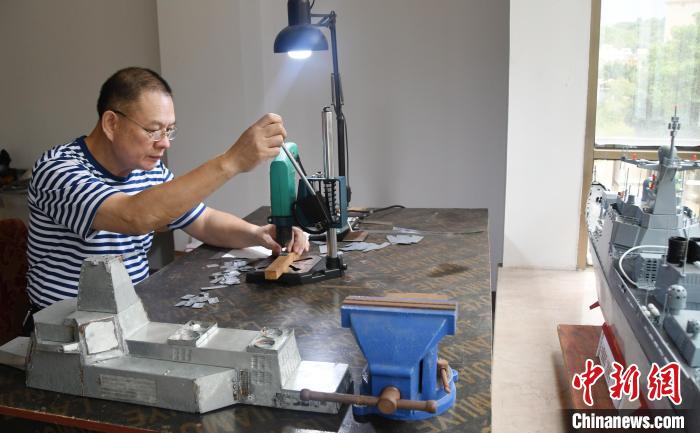 近40年的“造舰”生活,也让潘雄体会到许多不易和坚守。“做模型的技术对于建筑出身的我来说不是难题,对舰船的爱好和制作模型的耐心才是最重要的。”潘雄称,自己刚开始制作“昆明号”驱逐舰时并无多少资料可查,每天下班吃完饭后就在工作台上研究舰炮、桅杆、舰岛的整合安装和细节对接,经常做着做着就到了凌晨。
