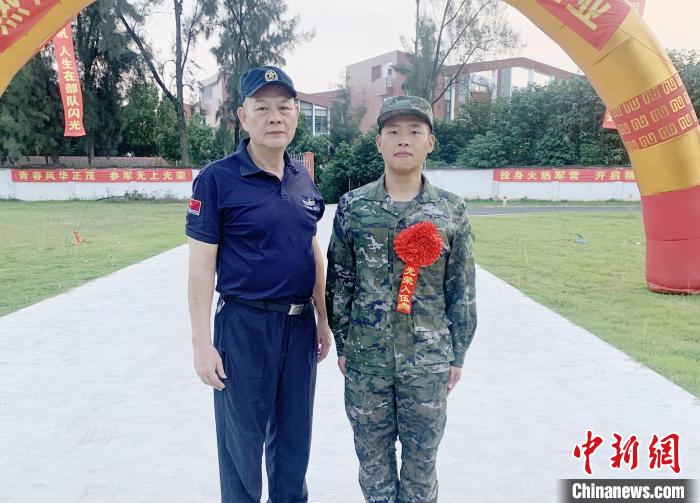 图为潘雄欢送今年入伍的侄儿潘宇龙。漳州市退役军人事务局 供图