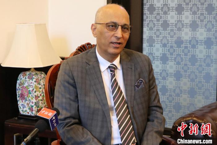 近日,巴基斯坦驻华大使莫因·哈克(Moin Ul Haque)接受中新社专访。 (巴基斯坦驻华使馆供图)