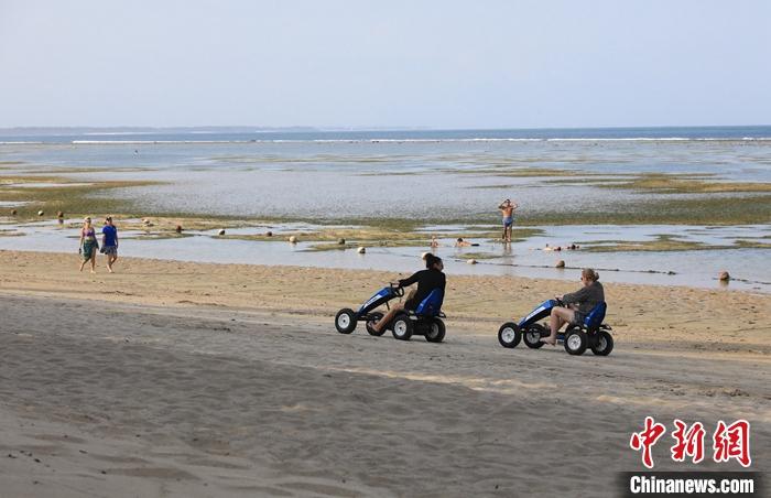 图为10月13日,巴厘岛努沙杜瓦海滩的游客。 中新社记者 李志全 摄