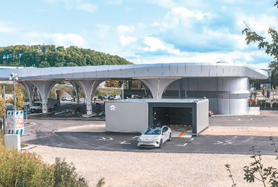 图为位于德国柏林的蔚来换电站。
