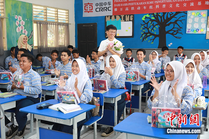 当天,雅万高铁动车组科普文化交流基地公益课堂进校园暨教学物资捐赠交接仪式在该中学举行,中车四方股份公司向学校捐赠了电脑、音响系统等教学物资。作为中国高铁技术专家,中车四方雅万高铁动车组主任设计师张方涛走进教室,为学生们带来高铁科普课,讲解雅万高铁的先进科技。