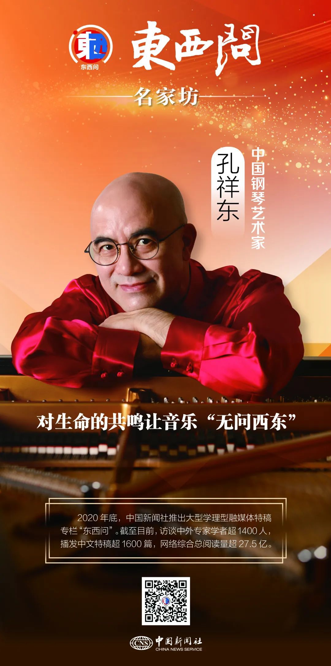 在中新社“东西问”专访前,坐在钢琴边的孔祥东便来了灵感,手落乐起,黑白跃动间,即兴之作铿铮流淌而成。