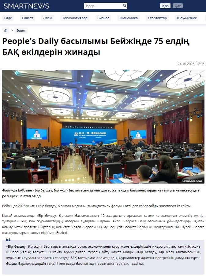 哈萨克斯坦Smartnews网站报道2023“一带一路”媒体合作论坛