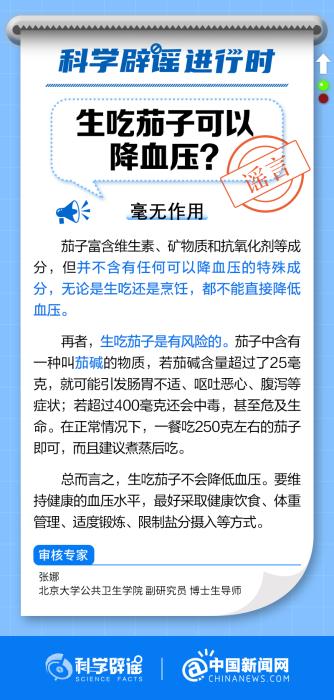 中新网10月25日电 茄子富含维生素、矿物质和抗氧化剂等成分,并不含有任何可以降血压的成分,无论是生吃还是烹饪,都不能直接降低血压。(来源:@科学辟谣 @中国新闻网)