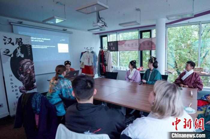 中新网柏林10月28日电 由汉景帝阳陵博物院主办的“汉服之美·汉文化艺术体验课程”活动近日在柏林的汉文化艺术交流中心讲堂(体验馆)举办,数十名来自德国柏林的年轻汉文化爱好者与中国讲师共同参与了活动。