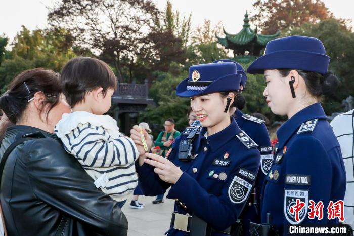 西湖女子巡逻队为瘦西湖的游客小朋友提供服务。主办方供图