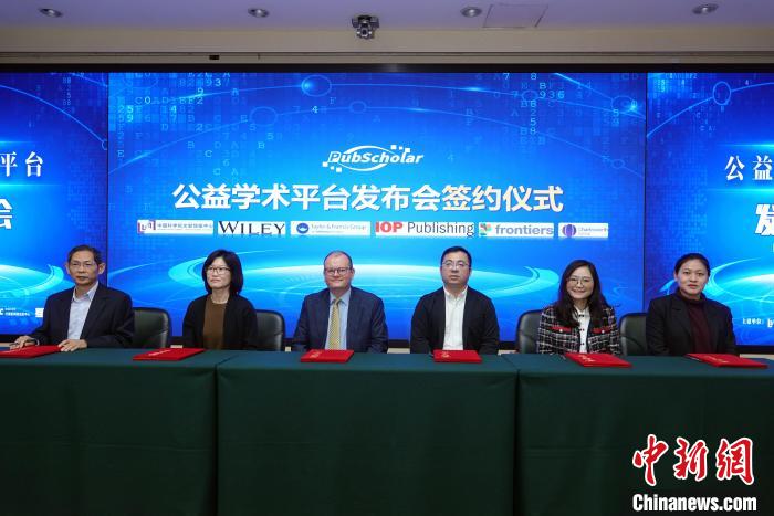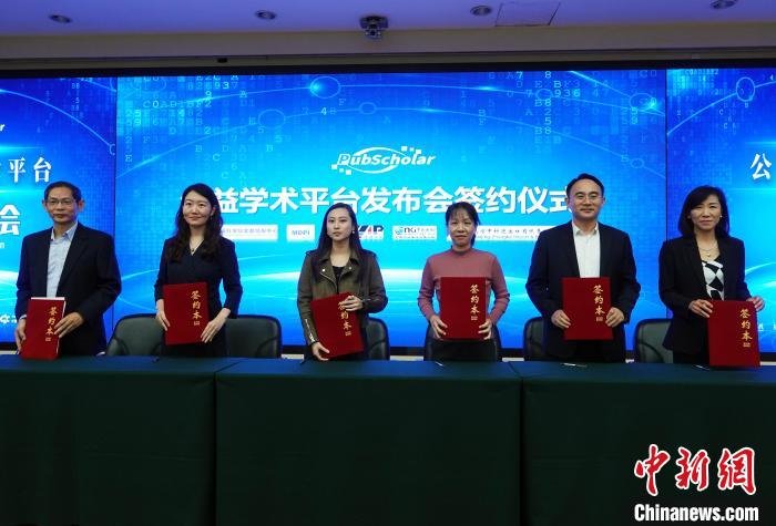 11月1日,“PubScholar公益学术平台”在中国科学院文献情报中心正式发布,并在发布会上举行相关合作签约仪式。中新网记者 孙自法 摄