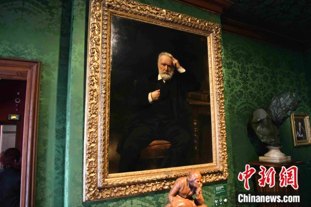 法国巴黎雨果故居博物馆内展出的雨果肖像画。李洋 摄