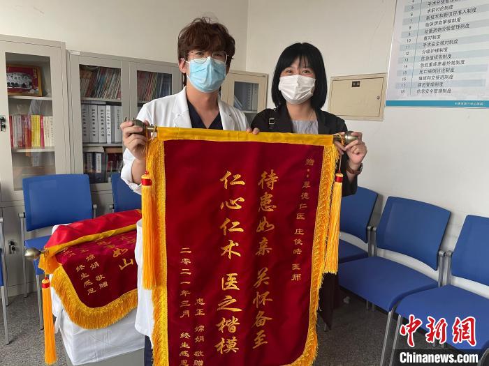 患者出院一个礼拜以后,专程带着锦旗来致谢庄竣皓。受访者供图