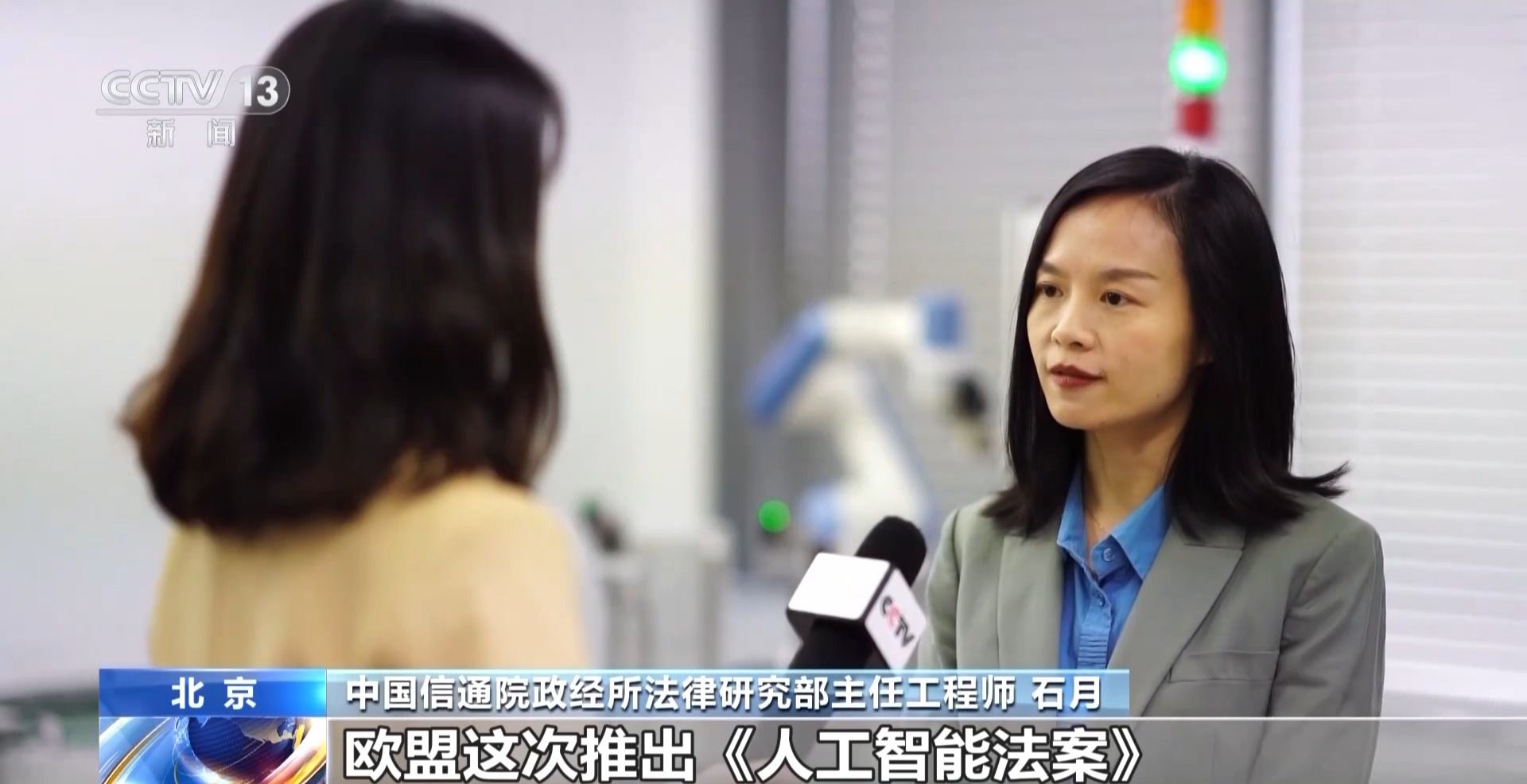 中国信通院政经所法律研究部主任工程师 石月:欧盟推出《人工智能法案》,很有可能成为全球首部高层级的关于人工智能的法律框架。希望在人工智能领域继续维护它本土的数字主权、数字安全,提升在人工智能规则制定的国际话语权。
