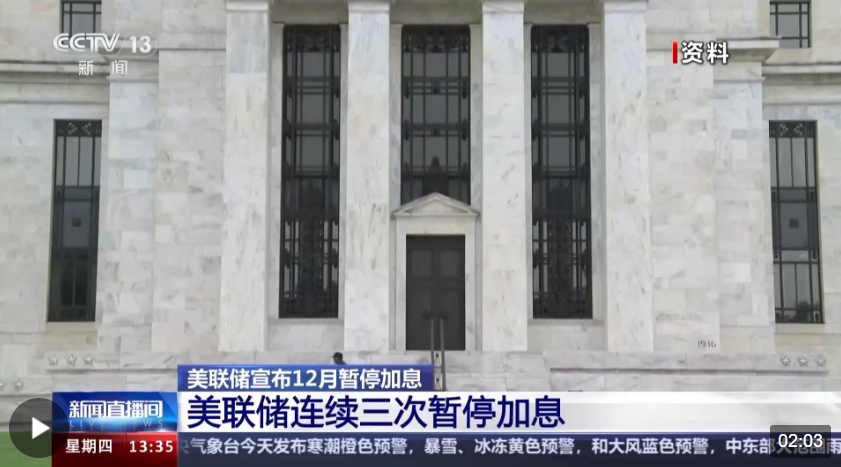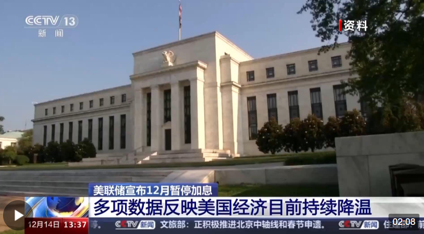 北京时间14日凌晨,美联储公布12月利率决议,宣布本月暂停加息。此前,美联储在本轮自2022年3月开始的加息周期中,已进行11次加息,目前,美国联邦基金利率目标区间维持在5.25%~5.50%。