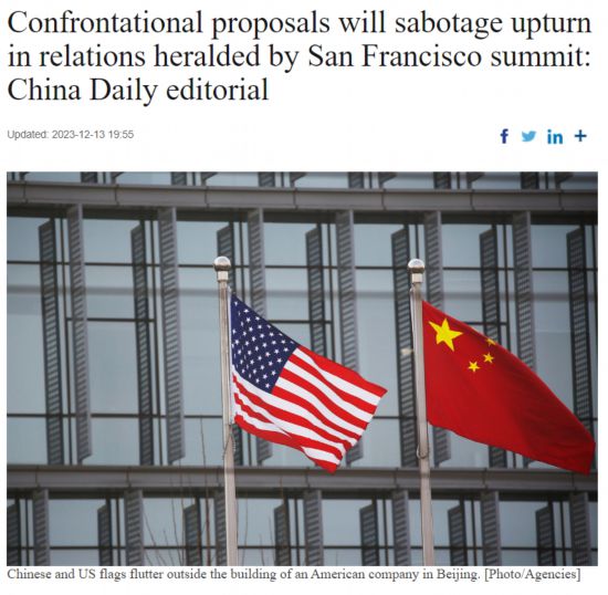 原标题:Confrontational proposals will sabotage upturn in relations heralded by San Francisco summit