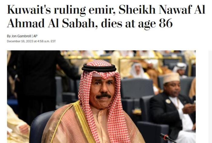 中新网12月16日电 据法新社最新消息,科威特埃米尔(国家元首)纳瓦夫·艾哈迈德·贾比尔·萨巴赫去世,终年86岁。