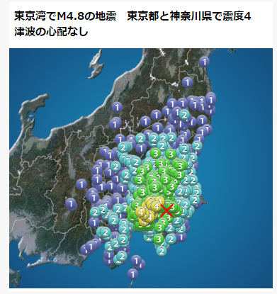 日本东京湾发生4.8级地震 震源深度80公里