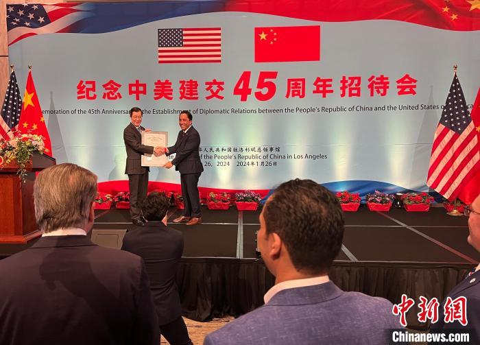 当地时间1月26日,中国驻洛杉矶总领事馆举办纪念中美建交45周年招待会。 中新社记者 张朔 摄