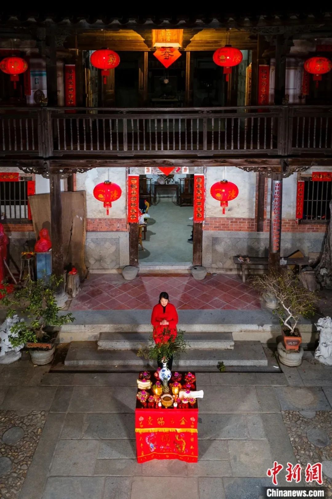 商户百姓在门口摆上贡品