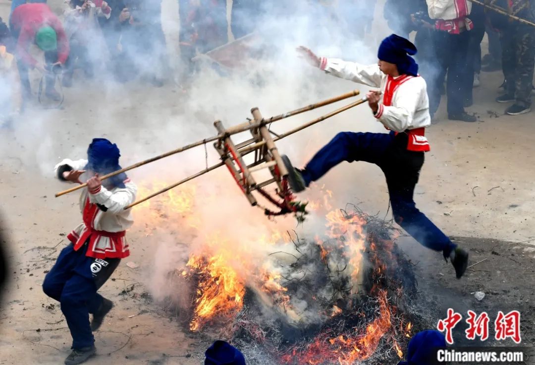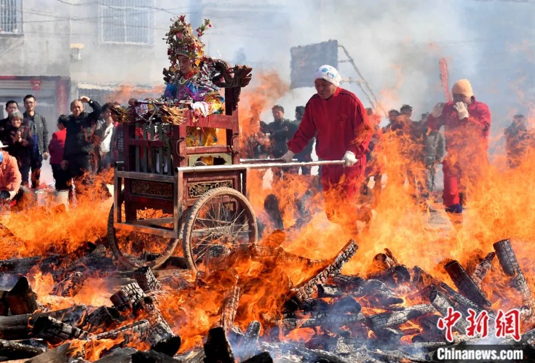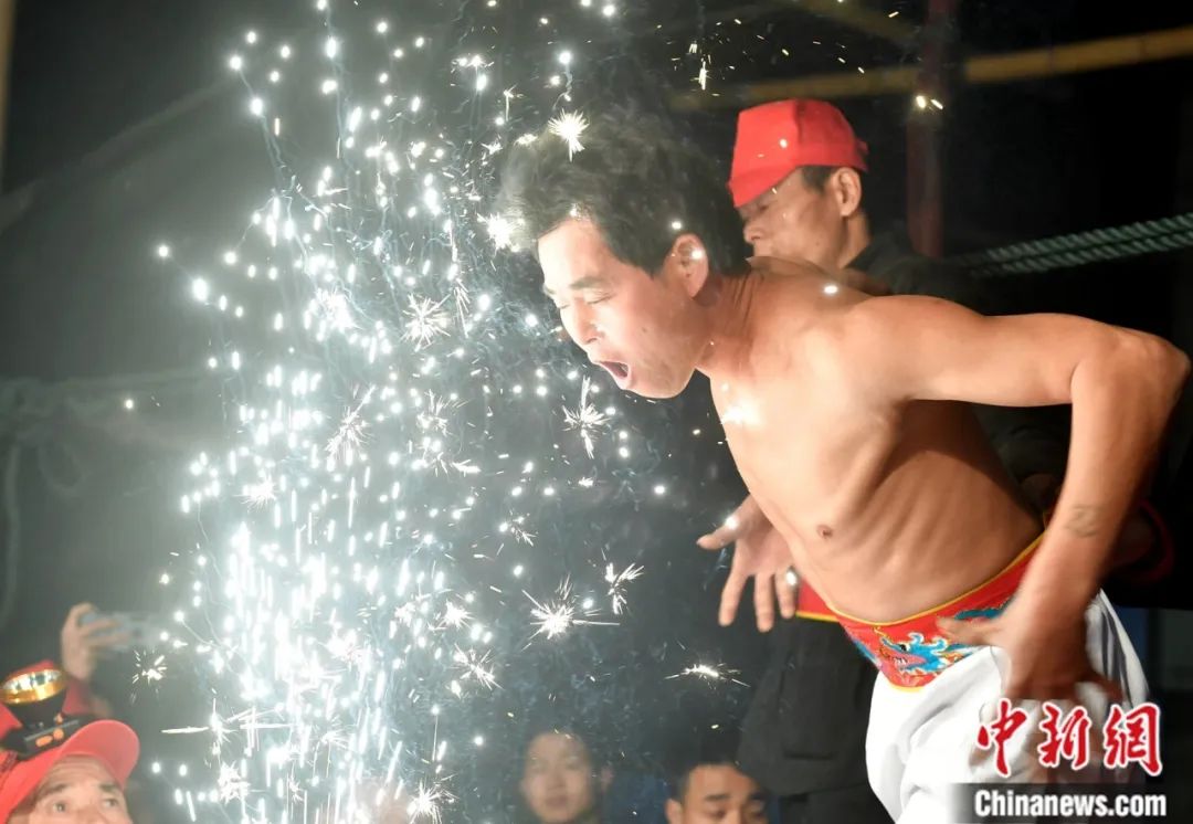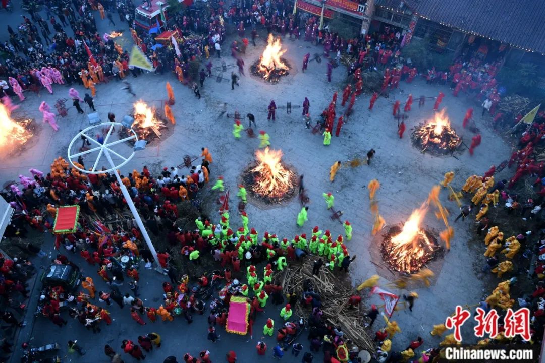 赤脚跨傩火。中新社记者 吕明 摄