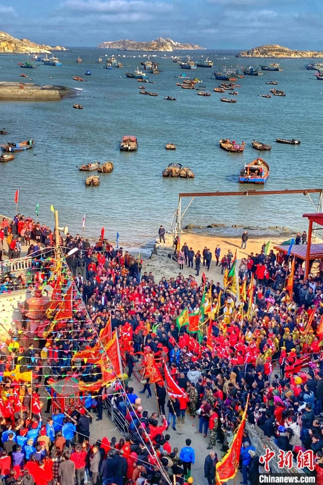 浮叶村举行“抬轿冲海”祈福仪式。中新社记者 王东明 摄
