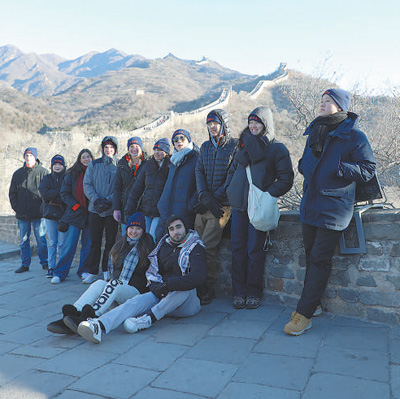1月7日,弗吉尼亚大学代表团成员在八达岭长城合影留念。