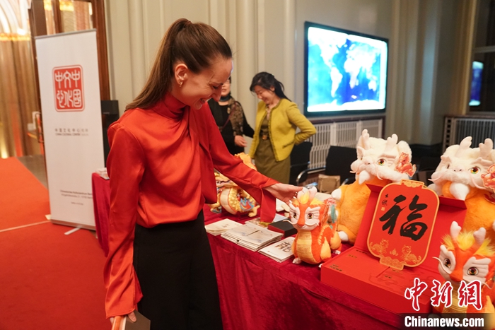 柏林中国文化中心还在现场设置了文化展台,向来宾展示来自中国的精美文创艺术品和文化旅游推广品,龙年的“吉祥龙”深受来宾喜爱。
