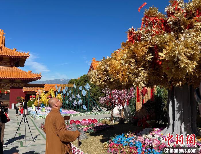 记者当日在西来寺看到,大雄宝殿前,灵动的“欢喜龙”主灯已搭建完成。平安灯会以“云水自在,祥和欢喜”为设计主题,祝福人们怀着喜悦的心情迎接新年。春节期间,寺院成佛大道两旁还有龙天护佑、五福临门行三好、百花齐放迎新春、诸事圆满祈愿树等景观。