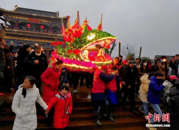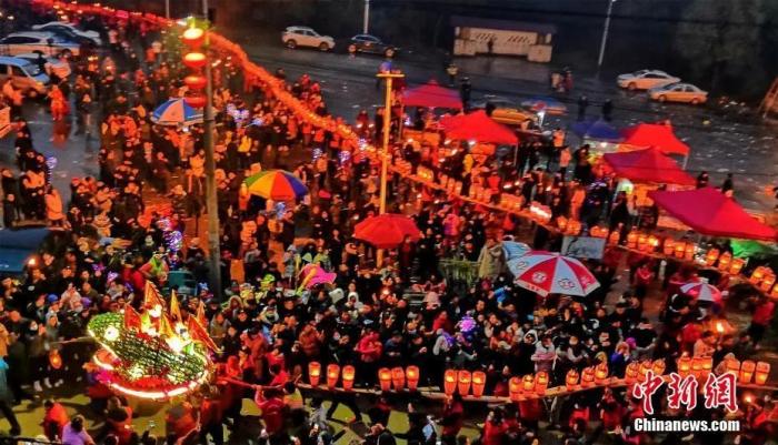 南昌“板凳龙”游街绵延千米 人山人海场面壮观。刘占昆 摄