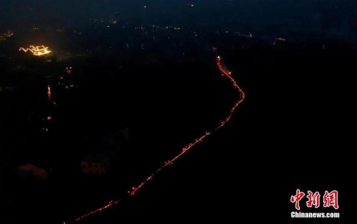 400余条板凳灯连接而成的近800米长的梅烛龙灯绕村游走,夜色中犹如一条巨龙。陈斌 摄