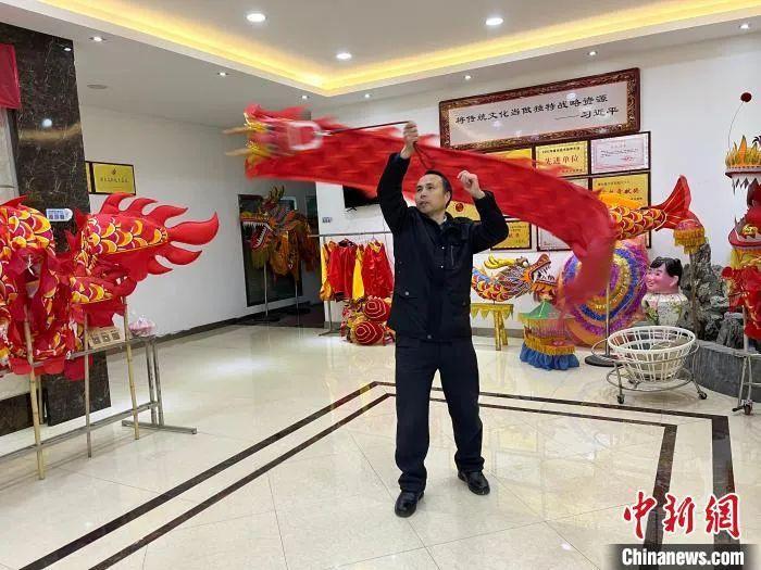 史克滨正在舞“彩带龙”。李韵涵 摄