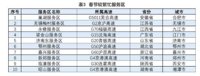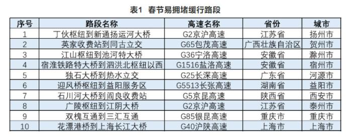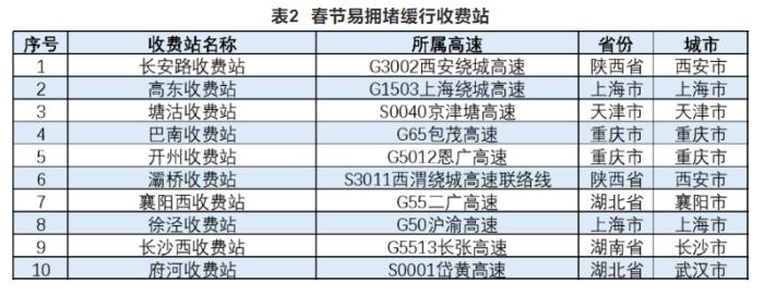 报告还公布了高速公路预计易发生拥堵缓行的路段、收费站以及较繁忙的服务区。