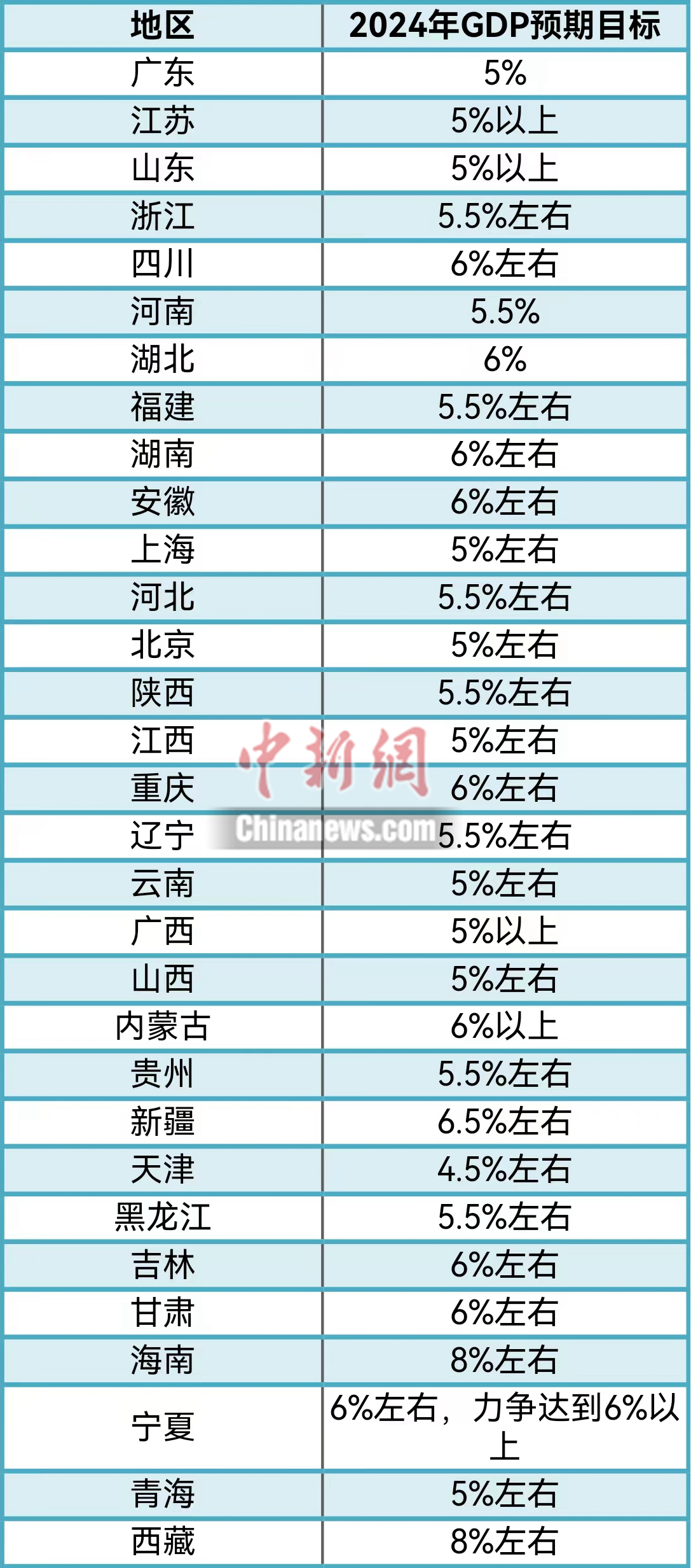 从各个省份敲定的新年GDP目标来看,绝大多数省份不低于5%,其中,海南、西藏均将2024年增速目标设为8%左右,为全国最高。