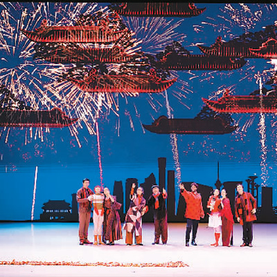 舞台上,红彤彤的灯笼、喜庆的春联、热闹的庙会奏响了中国农历新年的序曲;“团团”和“圆圆”家的年夜饭彰显了中国礼仪之邦的待客之道、尊老爱幼的传统美德,一张全家福更传达了中国人对亲情的重视和对团圆的向往;“胡桃夹子”大战“年”兽,则充满童趣地演绎了“过年”的传说;而当寓意吉祥的仙鹤在苍劲的松树下迎着朝阳翩翩起舞,西方芭蕾艺术在中国文化意象中焕发出了美妙的东方神韵;扇子舞、丝绸舞、风筝舞、陀螺舞……一个个颇具中国元素的庆典场面让阿联酋观众游历在瑰丽多姿的中国传统文化中。