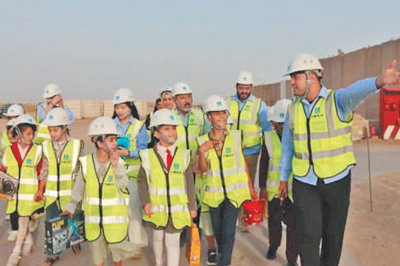 “小小工程师”在参观机场项目。