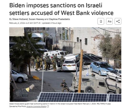 拜登政府就约旦河西岸暴力事件制裁以色列极端分子