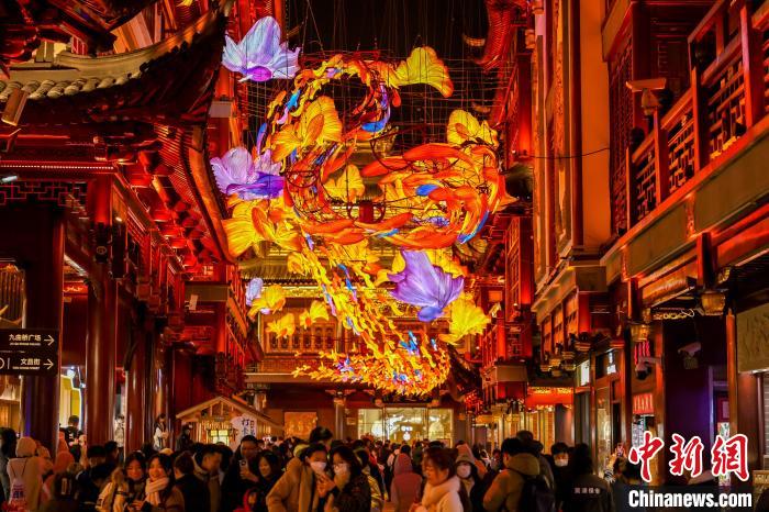 上海豫园商城凝晖路上的“一夜鱼龙舞”主题灯组。(复星国际供图)