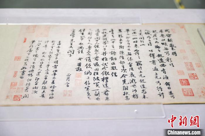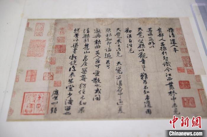 图为展出的黄庭坚《惟清道人帖》真迹。中新网记者 骆云飞摄