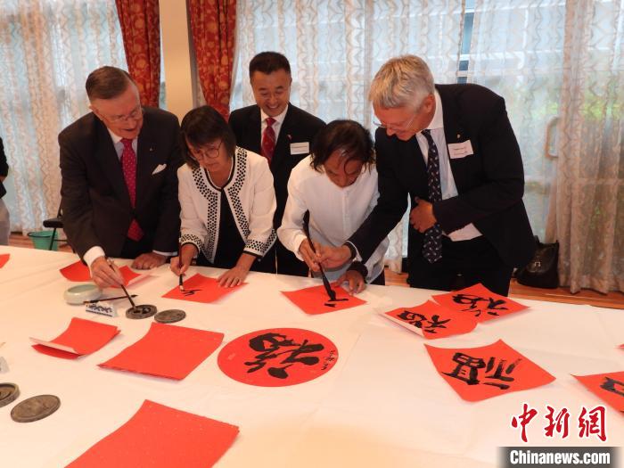 当地时间2月2日晚,中国驻悉尼总领事馆在领馆举办2024年春节招待会。当晚的招待会现场上,来宾们互致新春祝福,并兴致勃勃地体验中国书法。记者 顾时宏 摄