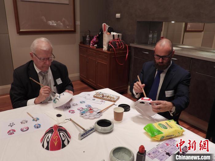当地时间2月2日晚,中国驻悉尼总领事馆在领馆举办2024年春节招待会。当晚的招待会现场上,来宾们互致新春祝福,并兴致勃勃地体验描画脸谱。记者 顾时宏 摄