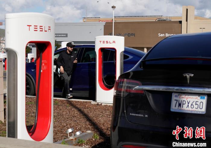 当地时间2月2日,车主在位于美国加州圣布鲁诺一处停车场给特斯拉汽车充电。 中新社记者 刘关关 摄