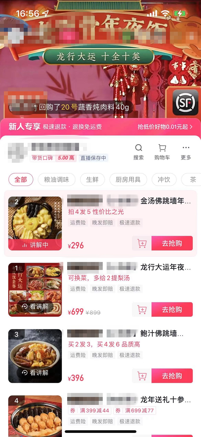 预制菜年夜饭在网上热销。截图