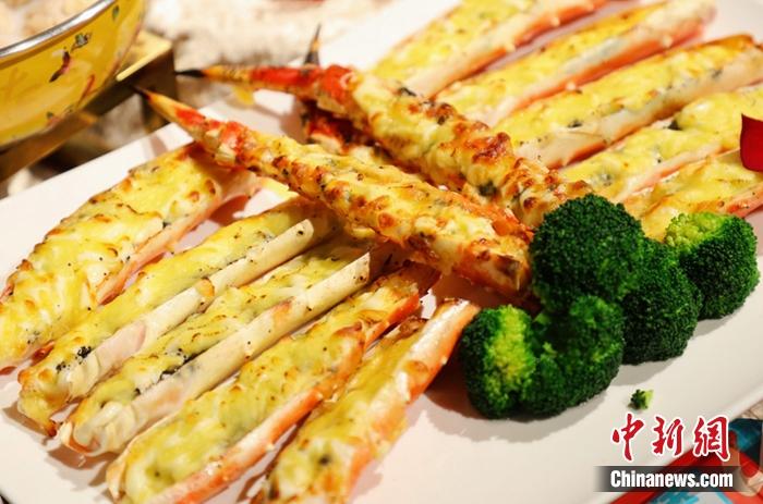 图为预制菜简单加工后的成品黑松露芝士帝王蟹腿。供图