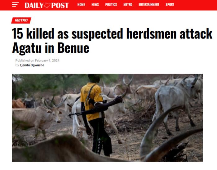 报道介绍,近期贝努埃州发生多起袭击事件,导致多人死亡、居民流离失所,阿加图地方政府区受影响尤为严重。