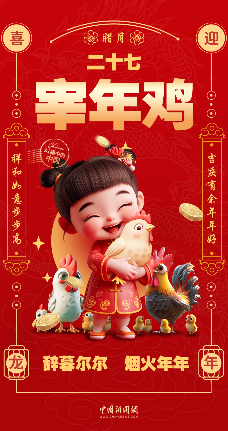 【龙腾九州 福暖四季】AI眼中的中国|腊月二十七,宰年鸡