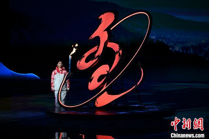 2月17日,第十四届全国冬季运动会开幕式在内蒙古呼伦贝尔市海拉尔区内蒙古冰上运动训练中心举行。图为武大靖点燃火炬。 中新社记者 崔楠 摄