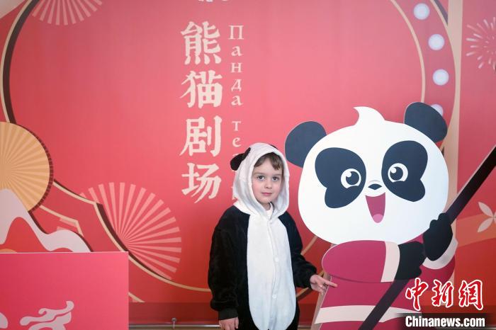 当地时间2月17日,“中国影视节目俄罗斯青少年配音大赛”和新春游园系列活动在莫斯科举行。图为活动现场身穿熊猫服装的俄罗斯小朋友。(主办方供图)
