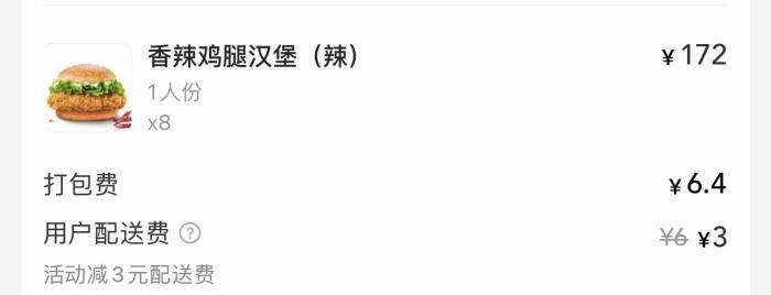 不过,记者20日查询多个外卖平台,发现在这些平台上点肯德基外卖,和在肯德基APP上相比,打包费并不完全一致。例如,记者在某外卖平台上点了八个香辣鸡腿汉堡,食物价格不到200元,而打包费已经达到6.4元。